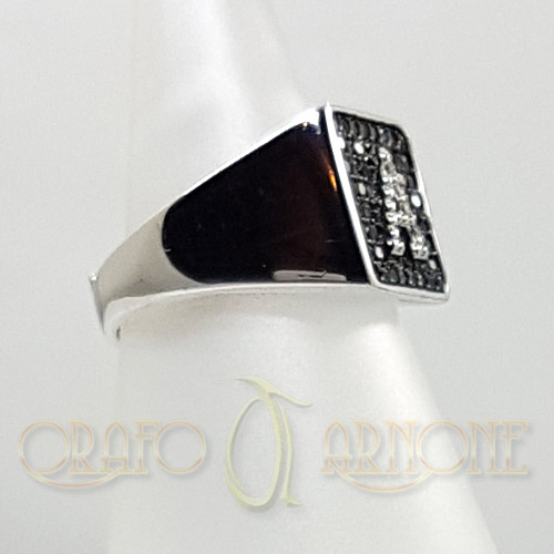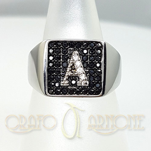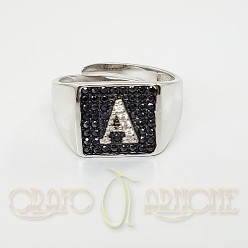 Anello  con iniziale e zirconi bianchi e neri cod.593019