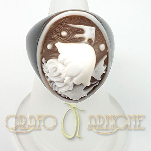Anello con Medusa e Pesci di Cammeo Artigianale cod.913039
