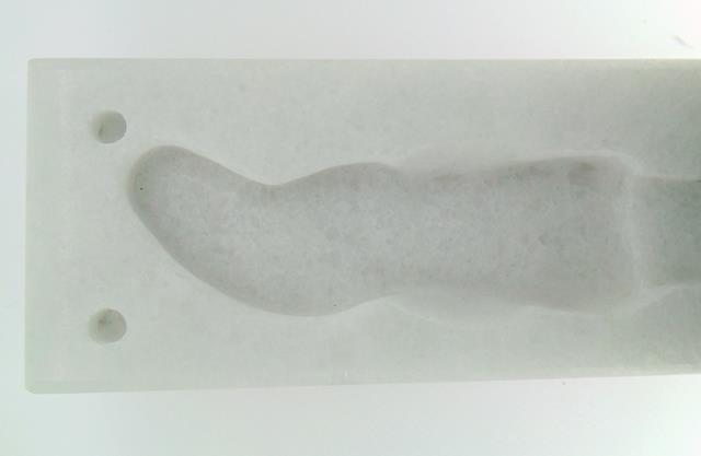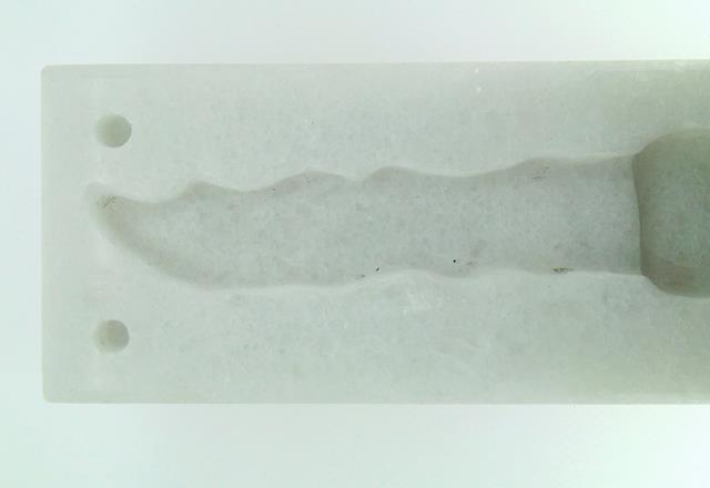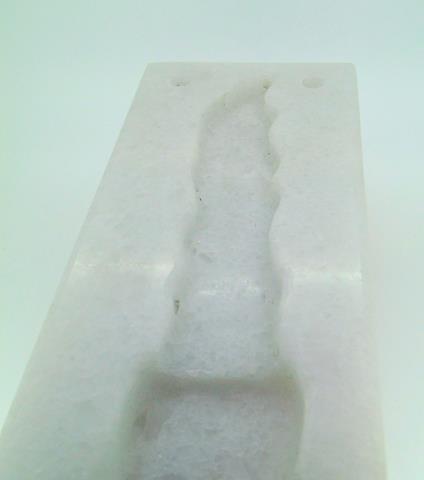 Astuccio con coperchio con interno scolpita la forma del tagliacarta il tutto realizzato in Marmo cristallino bianco Turco, dimensioni cm 25,2x7,0x h5,0 chiuso.