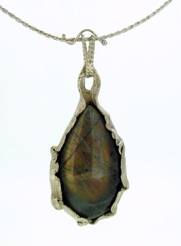 Ciondolo artigianale pezzo unico in argento 925%° rodiato e labradorite.