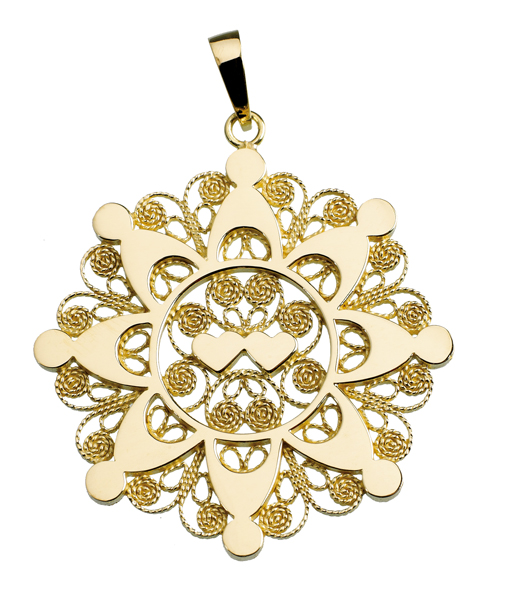 Diametro Presentosa con due cuori cm 3,2 realizzata in filigrana