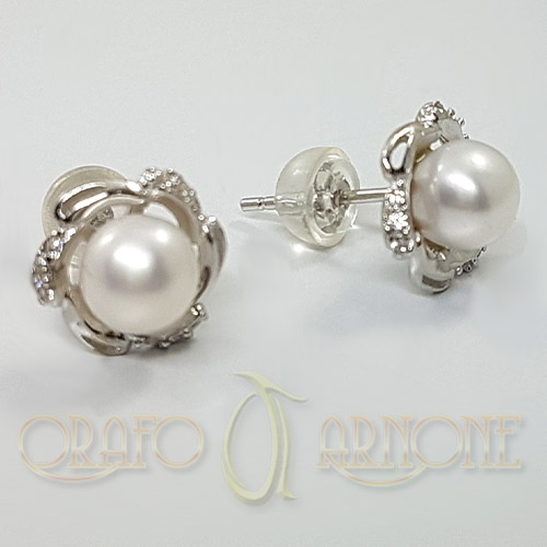 Orecchini Argento con Perle Bianche